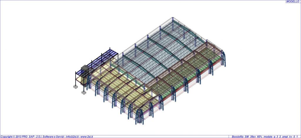 Le nuove strutture metalliche sono state dapprima studiate autonomamente, a livello di “curva di capacità”, in modo da verificare l’effettivo comportamento, per poi verificarne il funzionamento in un modello globale tramite curve di pushover. Punto critico è stata la compatibilità degli spostamenti rispetto alla struttura esistente prefabbricata, e la trasmissione degli sforzi all’interno dell’edificio.